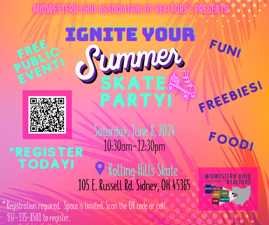 WHAT... Join the Midwestern Ohio Association of REALTORS® as we kick-off summer break with an epic skate party! This FREE event is open to the public and includes food and goodie bags for all the children who attend.