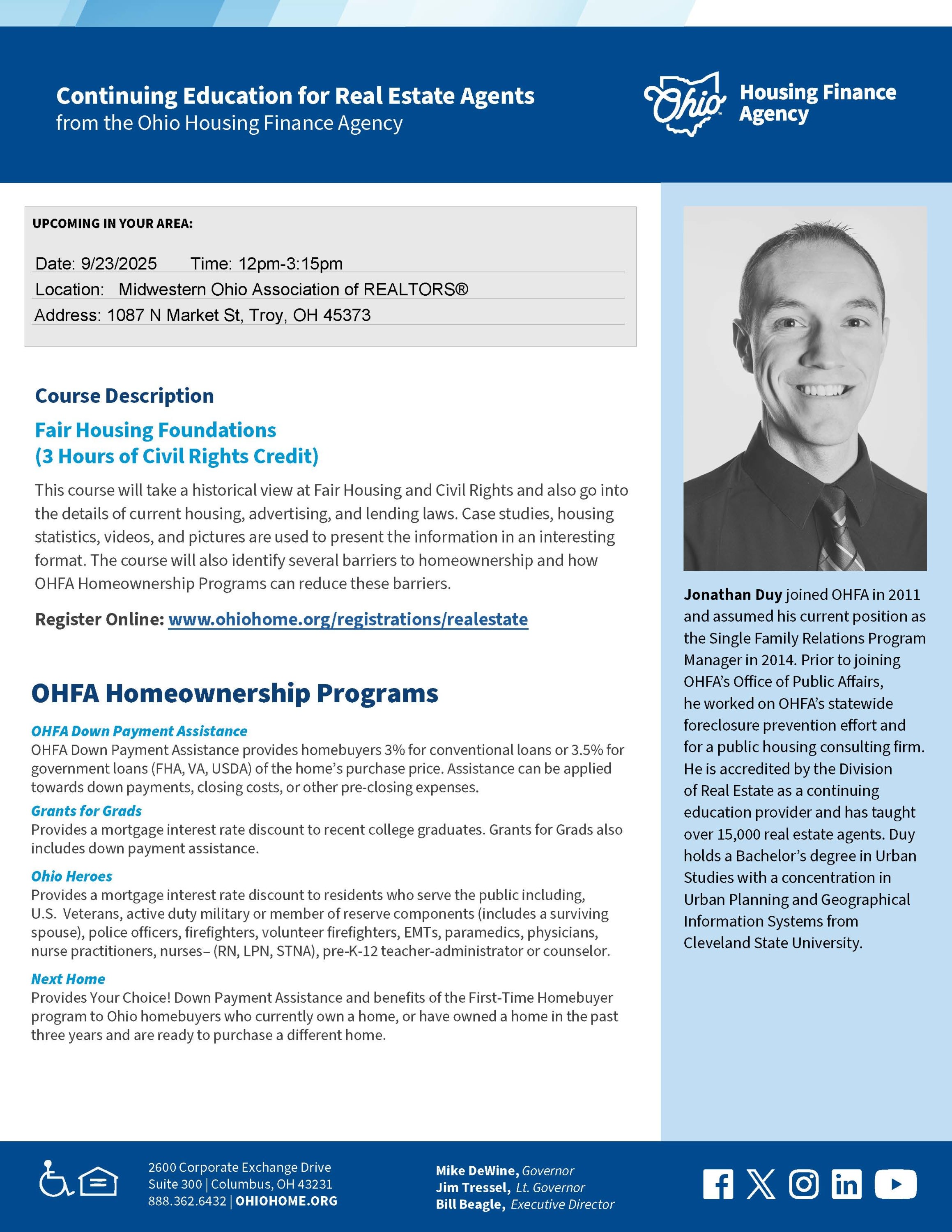 Jon Duy, Single Family Relations Program Manager - Ohio Housing Finance Agency (OHFA)